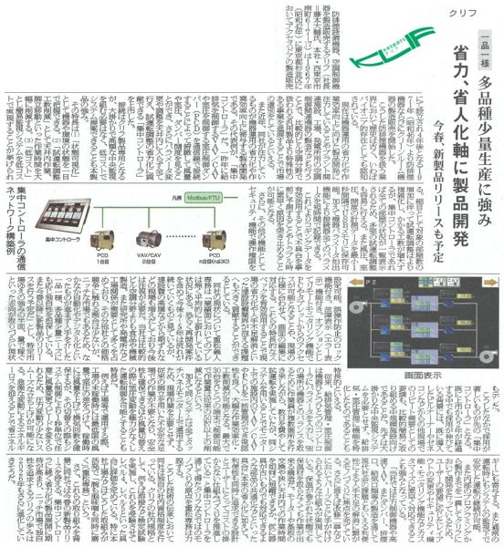VAV/CAV・PCD一括管理システム「集中コントローラ」が空調タイムスに掲載されました。 |